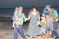 அதன்பின்னர் அந்த மக்கள் 31 படகுகளில் அரச கட்டுப்பாட்டுப் பிரதேசத்துக்குத் தப்பிச்செல்ல முயன்றபோது படகுகளைப் பின்தொடாந்து நான்கு படகுகளில் வந்த கடற்புலிகளின் தலைவர்களான மாறன், இனியவன், ரங்கன் மற்றும் அழகன் ஆகியோர் பொது மக்கள் மீது தாக்குதல் நடத்தினர். இதற்கான உத்தரவை கடற்புலிகளின் தலைவரான சூசையே விடுத்திருந்தார்.