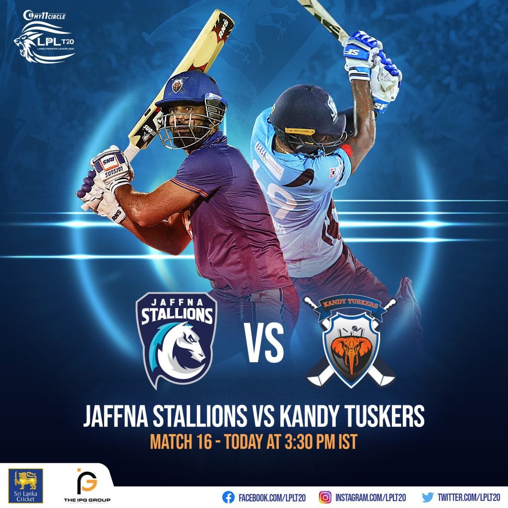 இந்நிலையில் லங்கன் பிரீமியர் லீக் இன் 16ஆவது ஆட்டத்தில் இன்று மாலை ஜஃப்னா ஸ்டாலியன்ஸ் அணியும் கண்டி டஸ்கர்ஸ் அணியும் மோதின. நாணயச்சுழற்சியில் வெற்றி பெற்ற ஜஃப்னா ஸ்டாலியன்ஸ் துடுப்பாட்டத்தை தேர்வு செய்து களமிறங்கியது.