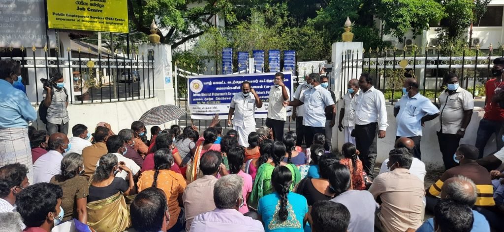 யாழ். கடற்றொழிலாளர் கூட்டுறவு சங்க சமாசங்களின் சம்மேளன முன்றலில் இருந்து மீனவர்களால் ஆரம்பிக்கப்பட்ட பேரணி யாழ். மாவட்ட செயலக முன்றல் வரை முன்னெடுக்கப்பட்டது.