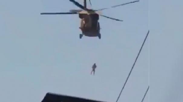 இந்த நிலையில் விமான நிலையத்தில் தலிபான்கள் துப்பாக்கி குண்டுகளை முழங்கி ஆரவாரத்துடன் கொண்டாடினர். இந்நிலையில், அப்கனின் காந்தஹார் நகரில் அமெரிக்க பிளாக் ஹாக் ஹெலிகாப்டரில் சடலத்தைத் தொக்கவிட்டபடி தலிபான்கள் பறந்த காட்சிகள் அடங்கிய வீடியோ ஒன்று வெளியாகியுள்ளது.