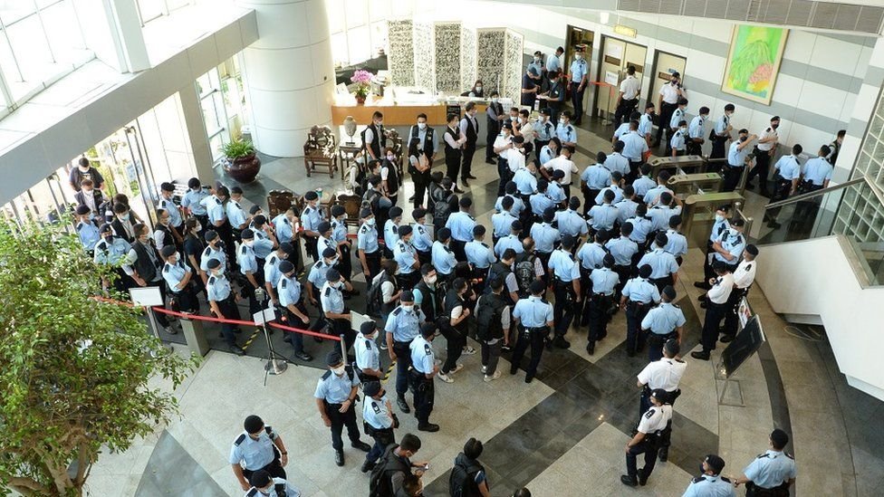 ஏற்கனவே இந்த பத்திரிகையின் உரிமையாளர் ஜிம்மி லாய், சீனாவுக்கு எதிராக போராடிய வழக்கில் தேசிய பாதுகாப்பு சட்டத்தின் கீழ் கைது செய்யப்பட்டு, சிறையில் அடைக்கப்பட்டுள்ளார். இந்த நிலையில் ஆப்பிள் டெய்லி பத்திரிகை தேசிய பாதுகாப்பு சட்டத்தை மீறியதாக கூறி நேற்று 500-க்கும் மேற்பட்ட போலீசார் அந்த பத்திரிகை அலுவலகத்துக்குள் அதிரடியாக நுழைந்து சோதனை நடத்தினர்.