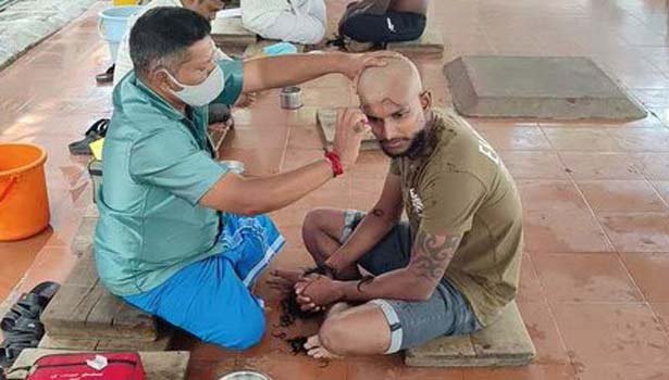 இந்நிலையில், பழனி தைப்பூச விழாவில் முருகப் பெருமானைத் தரிசிக்க நண்பர்களுடன் நேற்று பழனி வந்தார்.பழனி மலைக்கோயிலுக்குச் சென்ற கிரிக்கெட் வீரர் நடராஜன், நேர்த்திக் கடனாக மலைக்கோயில் அடிவாரத்தில் முடிக் காணிக்கை செலுத்தினார்.