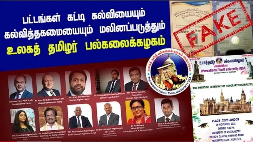 உலகத் தமிழ் பல்கலைக்கழகதெ்தால் நாளை 6ஆம் திகதி நடாத்தப்படவிருந்த கௌரவ கலாநிதிப் பட்டம் வழங்கும் நிகழ்வு தேசம் இணையத்தளத்தில் வெளியாகிய செய்தியையடுத்துப் பிற்போடப்பட்டுள்ளது.