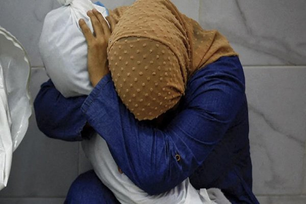 மருத்துவமனையின் சவக்கிடங்கில் துணியால் சுற்றப்பட்ட உயிரிழந்த தனது 5 வயது மருமகளின் உடலைப் பார்த்து பெண் ஒருவர் அழுவதை தனது கமரா கண்களின் வழியே படம் பிடித்திருந்தார் முகமது சலேம்.
