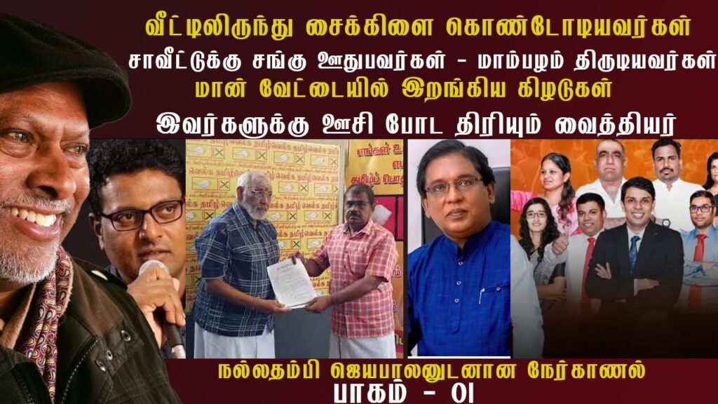 வீட்டிலிருந்து சைக்கிளைக் கொண்டோடியவர்கள்! சாவீட்டுக்கு சங்கூதுபவர்கள்! மாம்பழம் திருடியவர்கள்! மான் வேட்டையில் இறங்கிய கிழடுகள்! இவர்களுக்கு ஊசிபோடத் திரியும் வைத்தியர்! நல்லதம்பி ஜெயபாலன் (இடதுசாரிச் செயற்பாட்டாளர்)