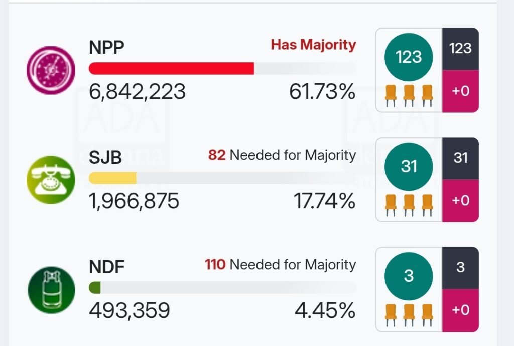 தேசிய மக்கள் சக்தி ஆட்சியமைக்க தேவையான மூன்றில் இரண்டு பெரும்பான்மையைக் கடந்து அறுதிப் பெரும்பான்மையைப் பெற்றுள்ளது. இலங்கை வரலாற்றில் விகிதாசார பிரதிநிதித்துவ முறையின் கீழ் கட்சியொன்று மூன்றில் இரண்டு பெரும்பான்மையை பெற்றமை இதுவே முதல்தடவவையாகும். ஒரு இலங்கையின் ஒவ்வொரு மாவட்டத்திலும் கூடுதல் வாக்குகளையும் ஆசனங்களையும் தேசிய மக்கள் சக்தி சுவீகரித்துக்கொண்டுள்ளது. விதிவிலக்காக மட்டக்களப்பில் மட்டும் தேசிய மக்கள் சக்தி இரண்டாம் நிலைக்குத் தள்ளப்பட்டுள்ளது. சிறுபான்மைக் கட்சிகள் அவர்களுடைய சொந்த மண்ணில் மண் கவ்வுகின்றனர். வடக்கு, கிழக்கு, மலையகம் எங்கும் தேசிய மக்கள் சக்தி வாக்குகளைக் குவித்து ஆசனங்களையும் குவித்துள்ளது. தமிழ், முஸ்லீம், மலையகக் கட்சிகள் இரண்டாம், மூன்றாம் நிலைக்கு தள்ளப்பட்டுள்ளன.