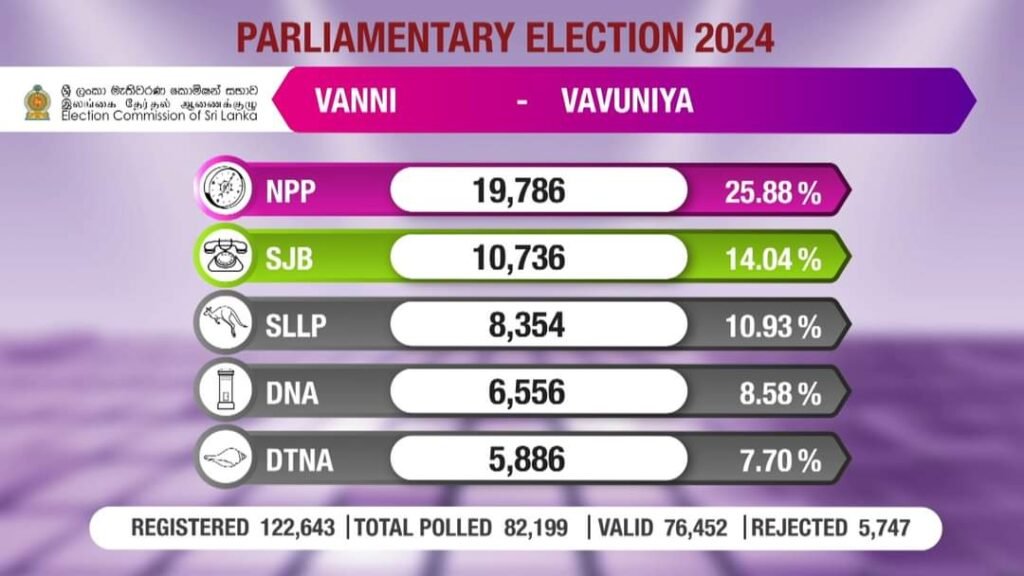 வன்னி மாவட்டத்திற்கான உத்தியோகபூர்வ இறுதி முடிவுகள் வெளியாகியுள்ளன.