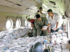 சமைத்த உணவுப் பொதிகள், பேக்கரி உற்பத்திப் உணவுப் பொருட்கள், பால், தண்ணீர் போத்தல்கள், குடிபான வகைகள் மற்றும் அத்தியாவசிய பொருட்கள் அடங்கிய 350 மெற்றித் தொன் பொருட்களையே விமானப் படையினர் எடுத்துச் சென்றுள்ளனர் என்றும் விமானப் படைப் பேச்சாளர் தெரிவித்தார்.