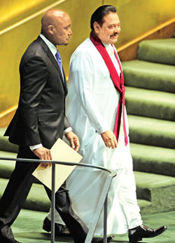 இலங்கைக்கு எதிரான சவால்களை நாம் இனங்கண்டுள்ளோம். அதில் பாரிய சவாலாக இருப்பது எமது கடந்த காலத்தில் ஏற்பட்ட காயங்களை ஆற்றுவதாகும். இந்நிலையில் அதற்காக இவ்வருட முற்பகுதியில் கற்றுணர்ந்த பாடங்கள் மற்றும் நல்லிணக்க ஆணைக்குழுவொன்று அமைக்கப்பட்டுள்ளது. அது பொறுப்புத் தன்மையுடனான கொள்கைக்கு முற்றிலும் உட்பட்டது என்று ஜனாதி பதி மஹிந்த ராஜாபக்ஷ நேற்று ஐக்கிய நாடுகளின் பொதுச் சபையில் உரையாற்றிய போது கூறினார். ஐ. நா. பொதுசபை கூட்டத் தோடரில் உரையாற்றிய ஜனாதிபதி மேலும் கூறியதாவது:-
