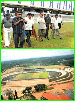 ஹோமாகம, தியகம பகுதியில் 156 ஏக்கர் நிலப்பரப்பில் நிர்மாணிக்கப்பட்டு வரும் மஹிந்த ராஜபக்ஷ சர்வதேச விளையாட்டு மைதான நிர்மாணப் பணிகளை ஜனாதிபதி மஹிந்த ராஜபக்ஷ நேற்றுக் காலை நேரில் சென்று பார்வையிட்டார்.