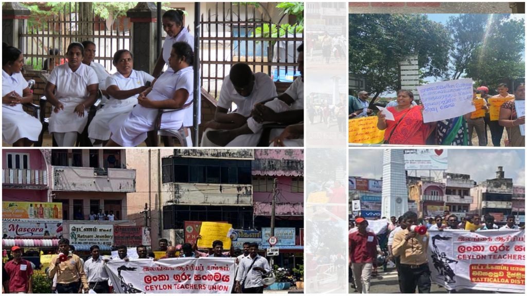 மாணவர்களின் உடைய பிரச்சனைகளுக்காக இந்த ஆசிரியர்களும் – நோயாளர்கள் எதிர்கொள்கின்ற பிரச்சனைகள் தொடர்பில் வைத்திய அதிகாரிகளும்- பொதுமக்களின் உடைய தேவைக்காக நிர்வாக அதிகாரிகளும் இதுவரையில் போராட்டம் செய்ததாக பெரிதாக பதிவுகள் இல்லை. எப்பொழுதெல்லாம் இந்த நிர்வாக அதிகாரிகள் பாதிக்கப்படுகிறார்களோ அப்பொழுது மட்டுமே நாடு சீரழிகிறது என இந்த அரசாங்க அதிகாரிகள் அழுது வடித்துக் கொண்டிருக்கிறார்கள். இதற்கு மக்கள் புரட்சி என பெயர் வைத்துக் கொள்கிறார்கள்.
