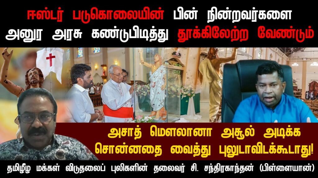 நான் எந்த நாட்டுக்கும் தப்பித்துப் போகப் போவதில்லை! ஈஸ்டர் குண்டுதாரிகளை கண்டுபிடித்து தூக்கிலிடுங்கள்!” – பிள்ளையான்: “அசாத் மௌலான தனக்கும் குடும்பத்துக்கும் விஸா எடுப்பதற்கு விட்ட ரீல்களை வைத்துக் கொண்டு படங்காட்ட வேண்டாம். ஈஸ்டர் குண்டுதாரிகளைக் கண்டுபிடித்து தூக்கிலிடுங்கள்” என்று தேசம்நெற்க்கு நேற்று வழங்கிய நேர்காணலில் பிள்ளையான் என அறியப்பட்ட சிவனேசதுரை சந்திரகாந்தன் தெரிவித்தார். இன்று தேசம் ரியூப்பில் வெளியாகியுள்ள இக்காணொலியில், “இந்த ஊடகங்கள் குற்றம்சாட்டுகின்ற மௌலவியை சிறையிலிருந்த 500 வரையானவர்களில் ஒருவராக கண்டிருக்கிறேன். பேசியிருக்கிறேன். அவர்களுடைய அதிதீவிரவாதத்தை அவர்களிடமே கண்டித்து இருக்கிறேன்” என்றும் பிள்ளையான் தெரிவித்தார்.