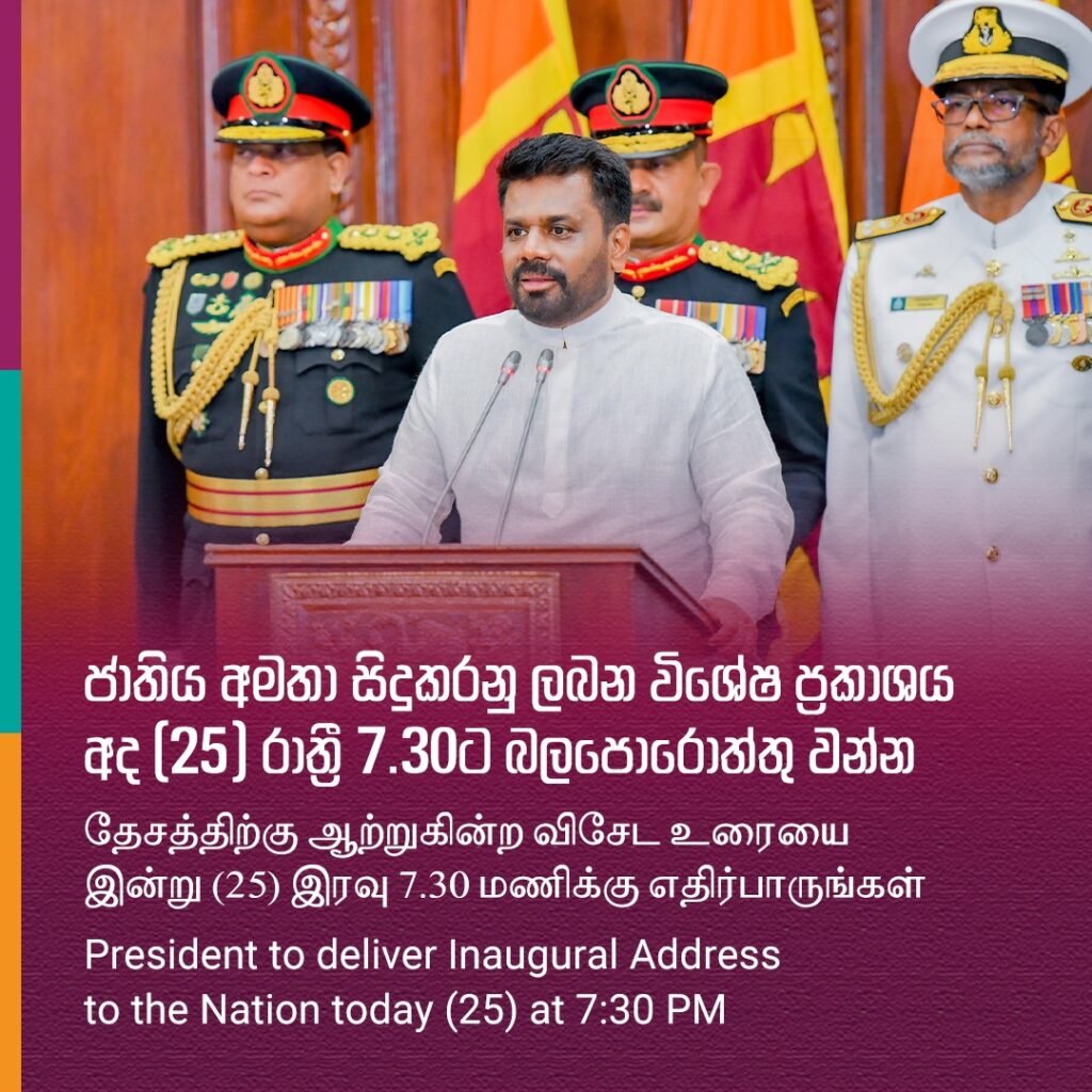 இந்த நாட்டின் பிரஜையாக இருப்பது பெருமை என்று நம் நாட்டு மக்கள் உணரும் வகையில் இந்த நாட்டை உருவாக்குவது அவசியம். அதற்கு உங்களின் கூட்டுப் பங்களிப்பு தேவை. அனைத்து பிரஜைகளுக்கும் சமூக நீதியை நிறைவேற்றும் அரசொன்றை உருவாக்க நாம் பொறுப்புடன் பங்களிக்கிறோம்.