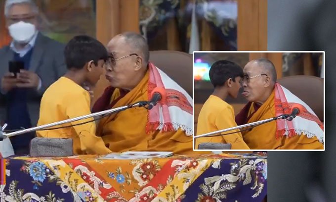 திபெத்திய பௌத்தமத தலைவரான தலாய்லாமா தன்னிடம் ஆசி பெற வந்த சிறுவன் ஒருவனின் உதட்டோடு உதடு வைத்து முத்தமிட்ட வீடியோ சமூக வலைத்தளங்களில் வைரலாக பரவி வருகிறது.