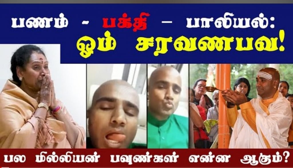 ஆனால் இதற்கு முற்றிலும் மாறாக, பணம் – பக்தி – படுக்கையில் கடவுளை (தன்னை)ச் சந்திக்கச் சொன்னார் லோக்கல் (local) முருகக் கடவுள் ஓம் சரவணபவன் என்று அறியப்பட்ட முரளிகிருஸ்ணன் புலிக்கள் (புலிக்கள் தெற்கு ஆசியாவில் பொதுவான ஒரு குடும்பப் பெயர்). இவ்வாறான சம்பவங்கள் இடம்பெற்றது லண்டனில் செழிப்பான செல்வந்தர்கள் மிக்க மேற்கு லண்டன் உள்ளாட்சிப் பிரிவுகளில். பாலியல் குற்றம் சுமத்தப்பட்ட ஓம் சரவணபவ, பிணை மறுக்கப்பட்ட நிலையில் டிசம்பர் 5இல் ஆரம்பிக்கப்படும் வழக்கின் முடிவு வரை தடுத்து சிறை வைக்கப்பட்டுள்ளார்