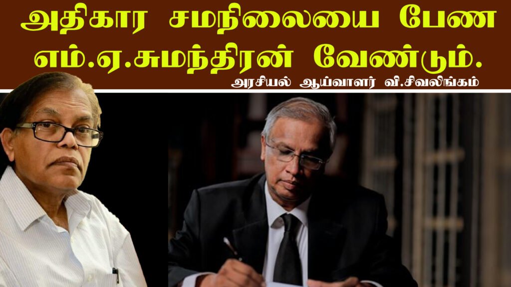 இலங்கை பாராளுமன்ற தேர்தல் 2024 ஆம் ஆண்டு இடம்பெறவுள்ள நிலையில் தமிழரசுக் கட்சியின் ஊடக பேச்சாளர் எம்.ஏ. சுமந்திரன் தொடர்பாக பல விமர்சனங்கள் முன்வைக்கப்பட்டுவரும் நிலையில் அது தொடர்பில் அரசியல் ஆய்வாளர் வி.சிவலிங்கம் அவர்களுடன் தேசம் ஜெயபாலன் கலந்துரையாடும் நேர்காணல்.