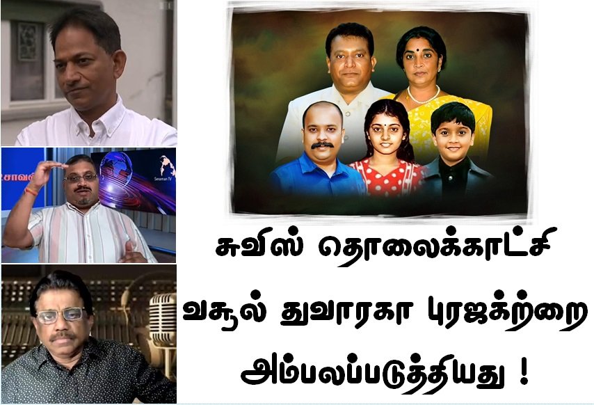 வசூல் ‘துவாரகா புரஜக்ற்’றை சுவிஸின் தேசியத் தொலைக்காட்சியான SRF “தமிழ்ப்புலிகளின் நன்கொடை ஊழல் : புலிகளின் தலைவர் உயிருடன் இருக்கிறாரா?” என்ற தலைப்பில் ஆவணப்படமாக வெளியிட்டது. சில தினங்களுக்கு முன் யூன் 19, 2024 அன்று ஒளிபரப்பப்பட்ட 14 நிமிடங்கள் ஏழு விநாடிகள் நீண்ட இந்த ஆவணப்படத்தில் வசூல் ‘துவாரகா புரஜக்ற்’றின் முக்கிய புள்ளிகள் மற்றும் துவாரகாவாகத் தோண்றுவதாக சொல்லப்படும் பெண்ணுடனான உரையாடல்கள் மற்றும் இவர்களை கேள்விக்கு உட்படுத்தும் பணத்தை இழந்து சிலரின் பதிவுகளும் ஒளிபரப்பப்பட்டது. தேசம்நெற் உட்பட தமிழ் சமூக வலைத்தளங்களில் நன்கு அலசி அம்பலப்படுத்தப்பட்ட வசூல் ‘துவாரகா புரஜக்ற்’றை தற்போது ஐரோப்பிய நாடொன்றின் தேசியத் தொலைக்காட்சியும் அம்பலப்படுத்தியிருப்பது இந்த மோசடியின் தீவிரத்தை வெளிப்படுத்துவதாக உள்ளது.